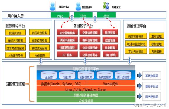 以上四大服务板块都是基于园区智慧云服务平台,通过Web、微信、短信等多种手段形成来实现企业和园区的实时对接与信息共享。同时,通过企业的大数据,分析企业现状和需求,形成智能分析模型,实现为企业的精准服务。