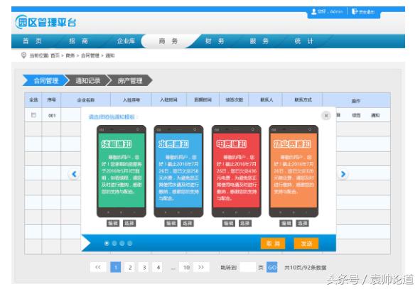 收费/计费结算管理可直接进行收费计费管理、财务核算管理、合作运营计费结算管理,入驻企业将会即时通过短信、微信等方式收到服务内容到期提醒。