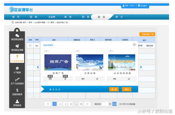 通过园区管理服务平台,建立健全企业数据采集、业务成果展示等手段,为政府提供更多信息支持的同时,提高园区及入园企业的影响力。