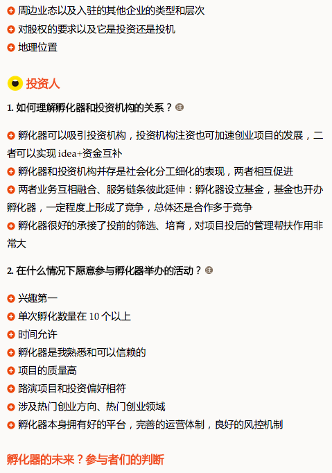 这部分的服务工作,需要孵化器运营人员自己来做,而且需要团队成员有较强的行业经验积累和人脉关系。在形式上和行业研究很相似,在业务上和咨询公司很相似。